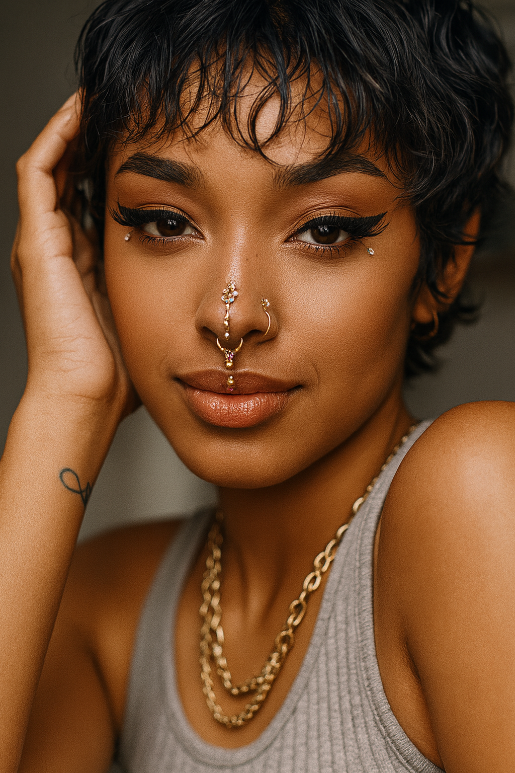Founded by Olema Ladé, a certified aesthetic technician and graduate in Visual Arts, Royal Blanc Jewelry merges artistic precision with the science of fine body adornment. Our work specialises in permanent jewelry and precision piercings that blend technical mastery, aesthetics, and energetic intention.